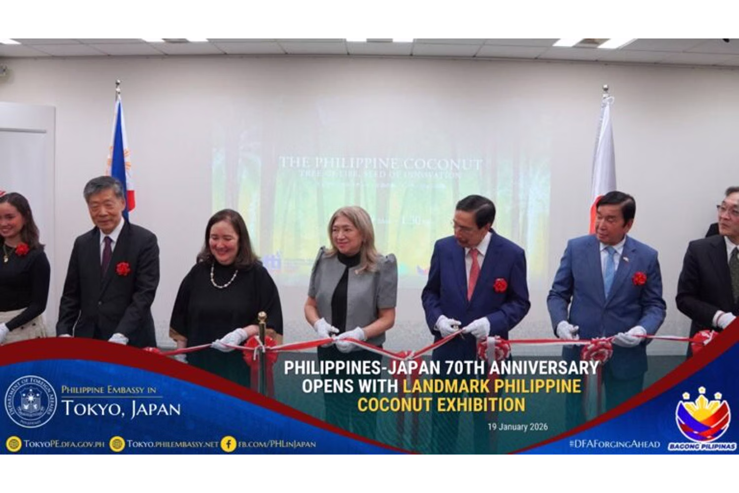 フィリピンと日本の国交正常化70周年を祝う幕開けとして、比貿易産業省(DTI)は、東京ミッドタウン・デザインハブにて旗艦プロジェクト「フィリピン・ココナッツ:生命の樹、イノベーションの種」を開催した。公式テーマ「共に未来を織りなす:平和、繁栄、可能性」の下、ココナッツを科学、デザイン、持続可能性が融合した「高付加価値なイノベーション・プラットフォーム」として日本市場へアピールした。