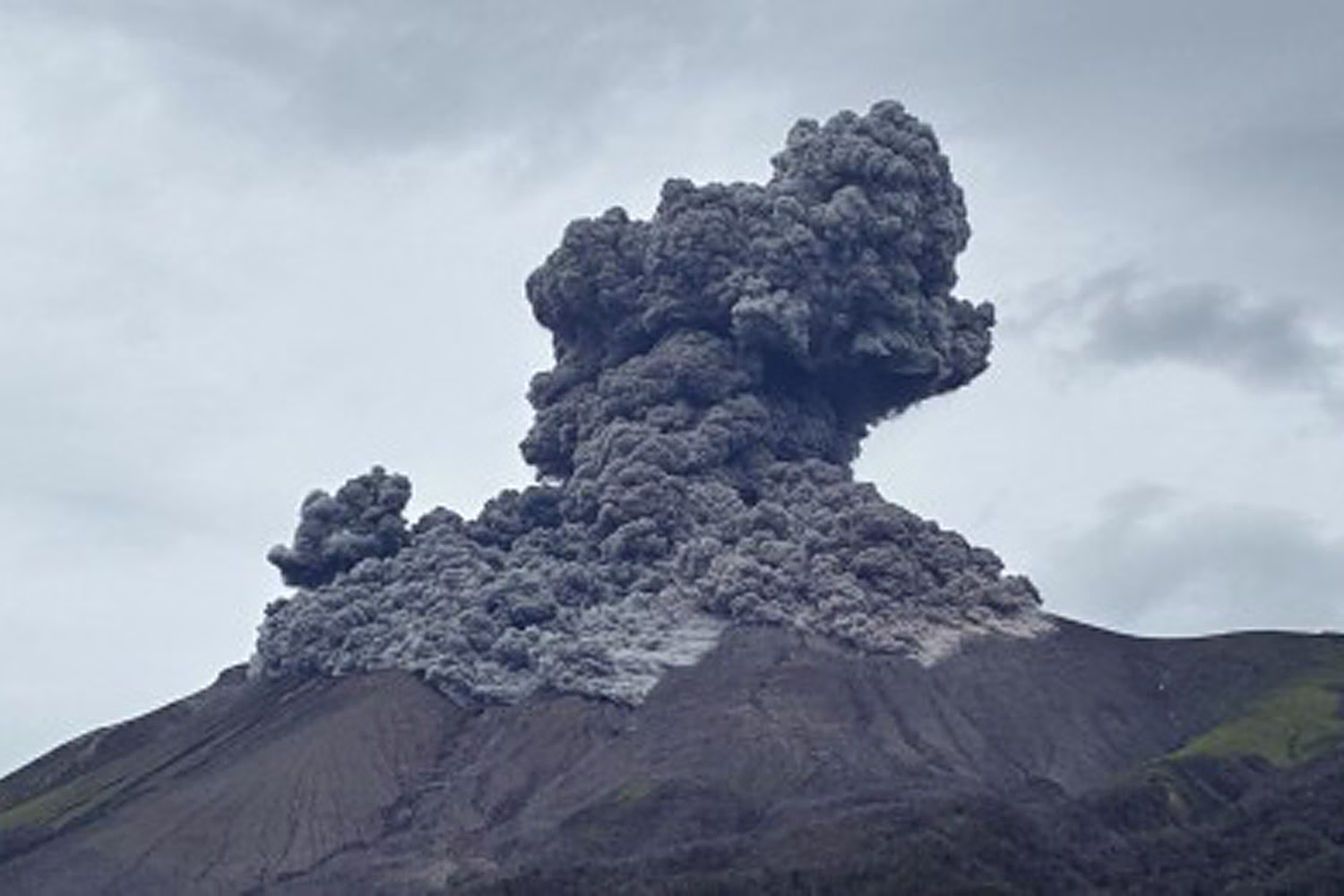 カンラオン山で「爆発的噴火」 噴煙と灰を放出、警戒呼びかけ